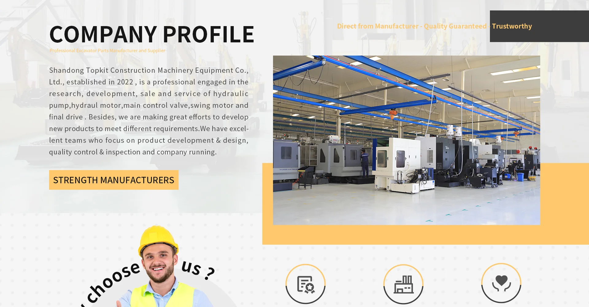 Produk utama: Pompa hidrolik, Motor hidrolik, katup hidrolik, sabuk karet, katup Solenoid
